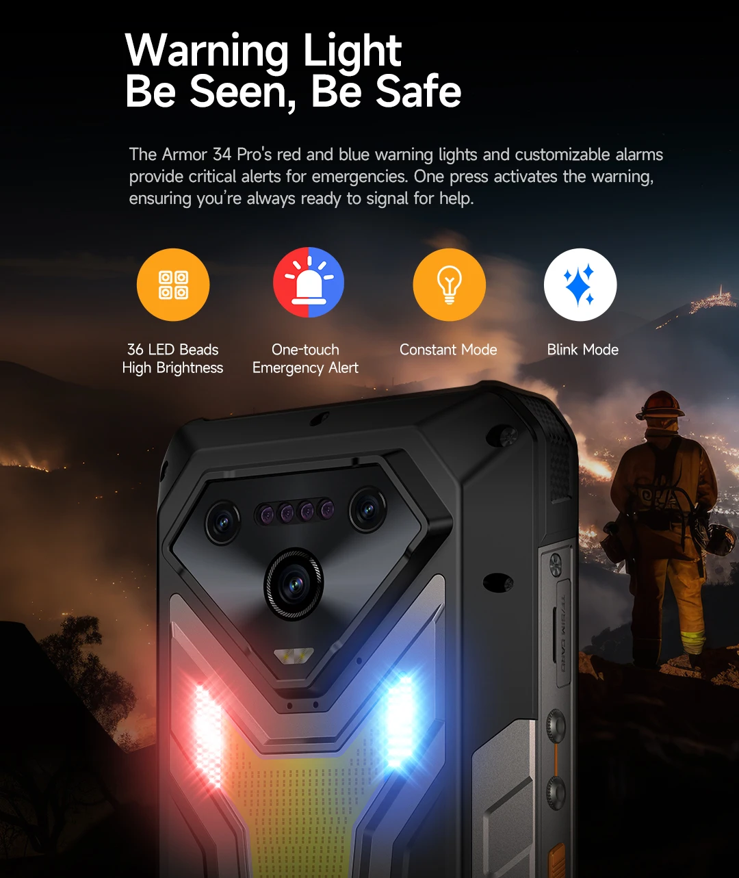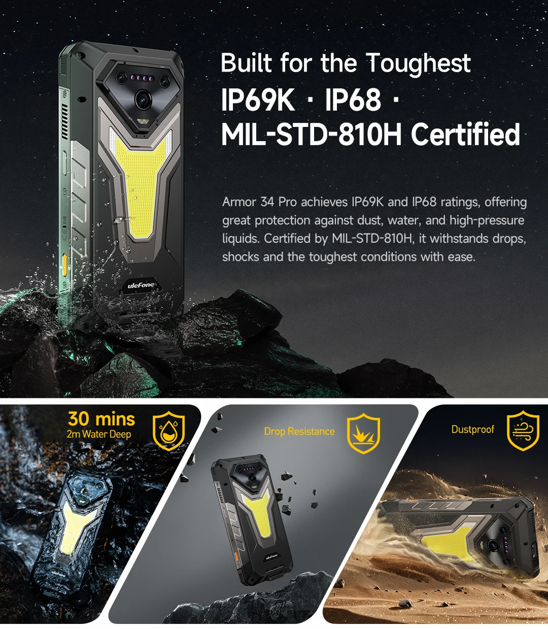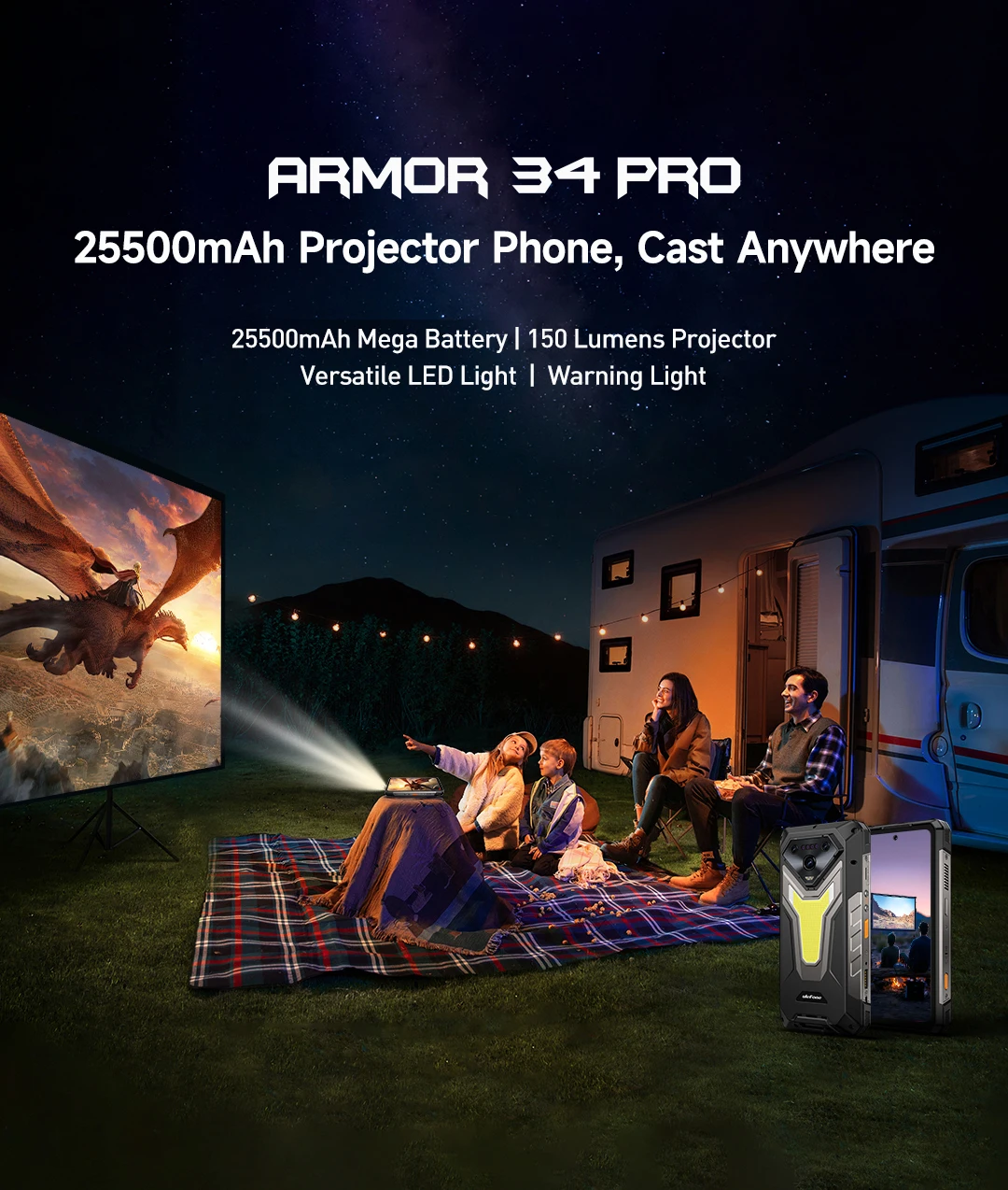 【Ships from US】Ulefone Armor 34 Pro 5G AI Rugged Phone 25500mAh Up to 32GB+512GB Built-in Projector 120Hz 6.95