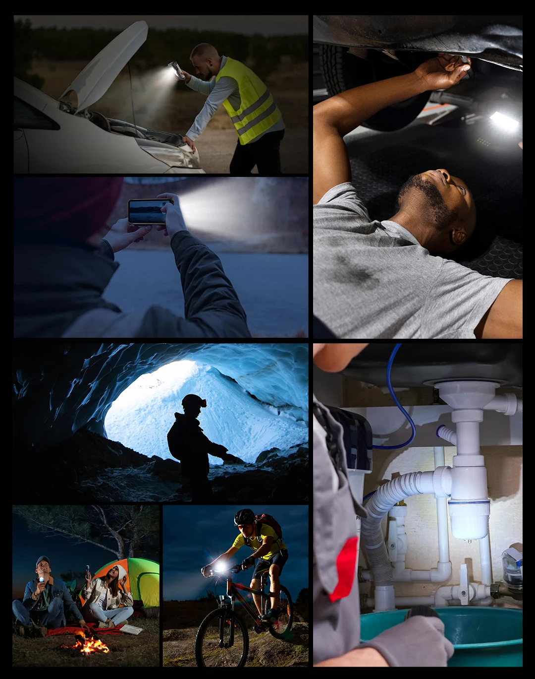 The high-intensity rear LED light is a beast in the wild. With a blazing 1100 lumens of brightness, 585 LEDs, and a 6.5W output, it’s powered by a mega 25500mAh battery, outshining and outlasting traditional camping lanterns.