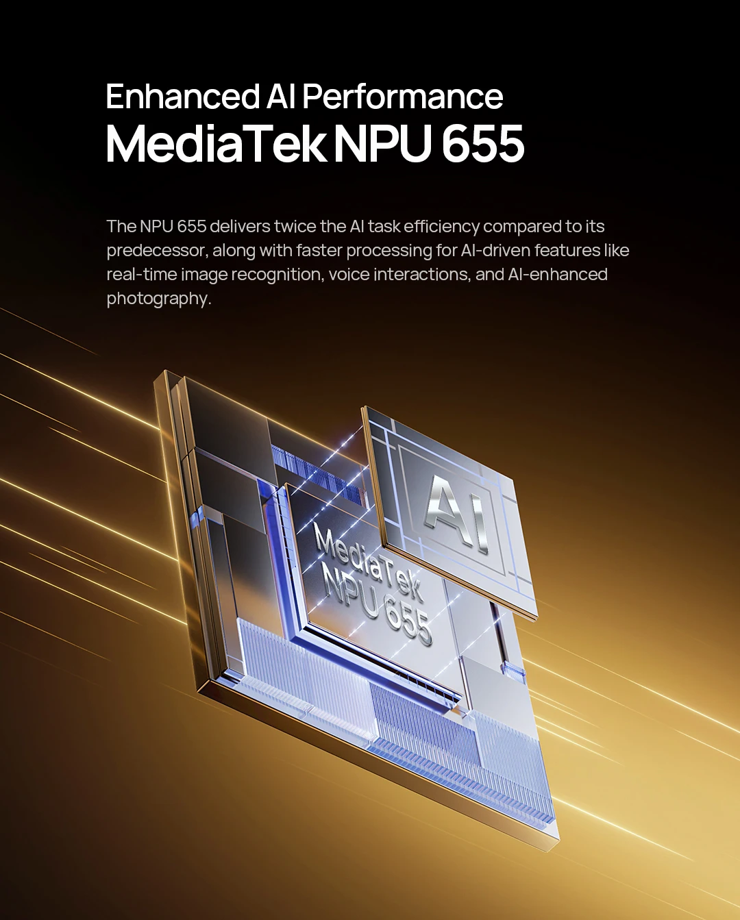 The NPU 655 delivers twice the AI task efficiency compared to its predecessor, along with faster processing for AI-driven features like real-time image recognition, voice interactions, and AI-enhanced photography.