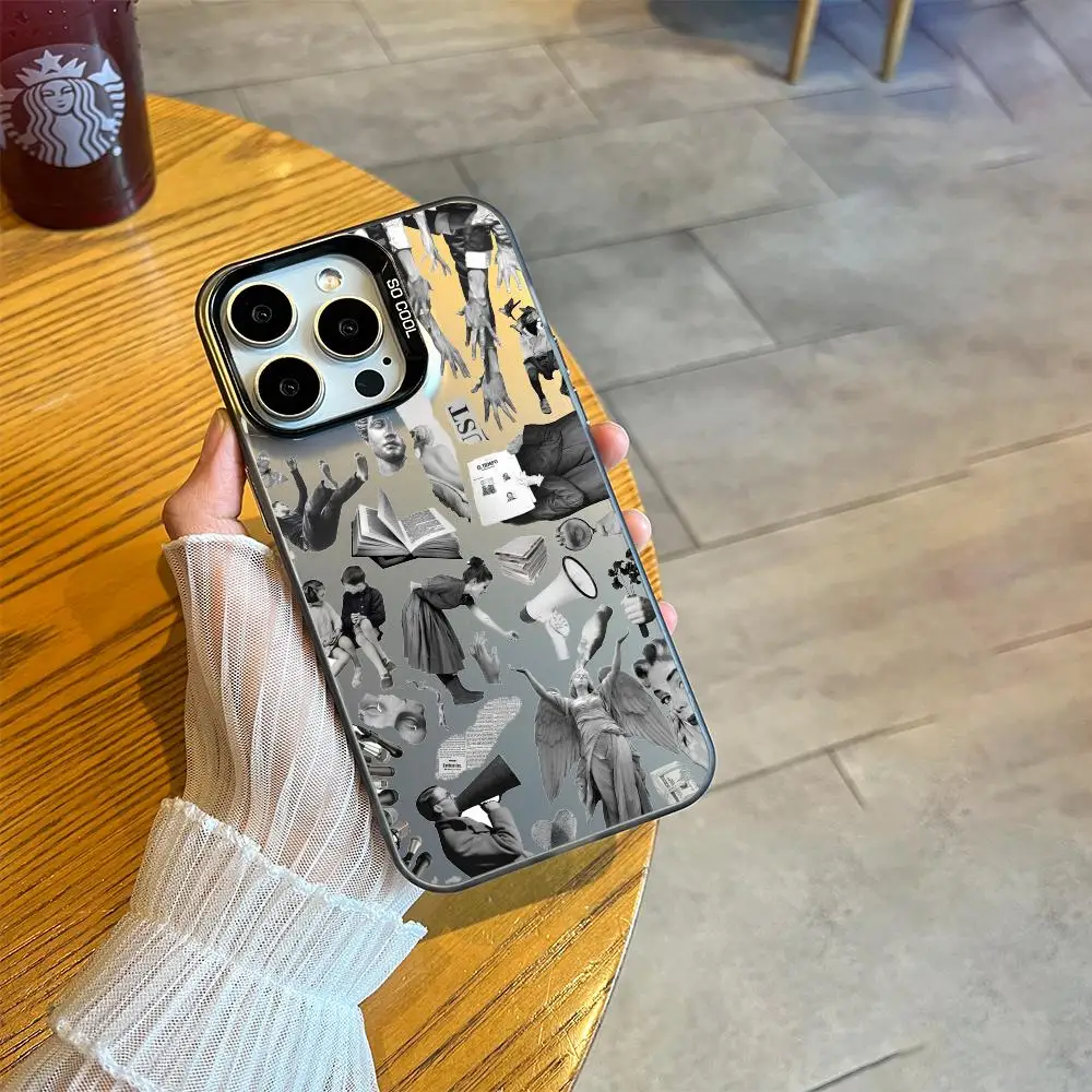 Black and White Artistic Pattern Phone Case Shockproof&anti Slip Frosted Suitable for iPhone 16 15 14 13 12 11 Pro Max Plus Mini