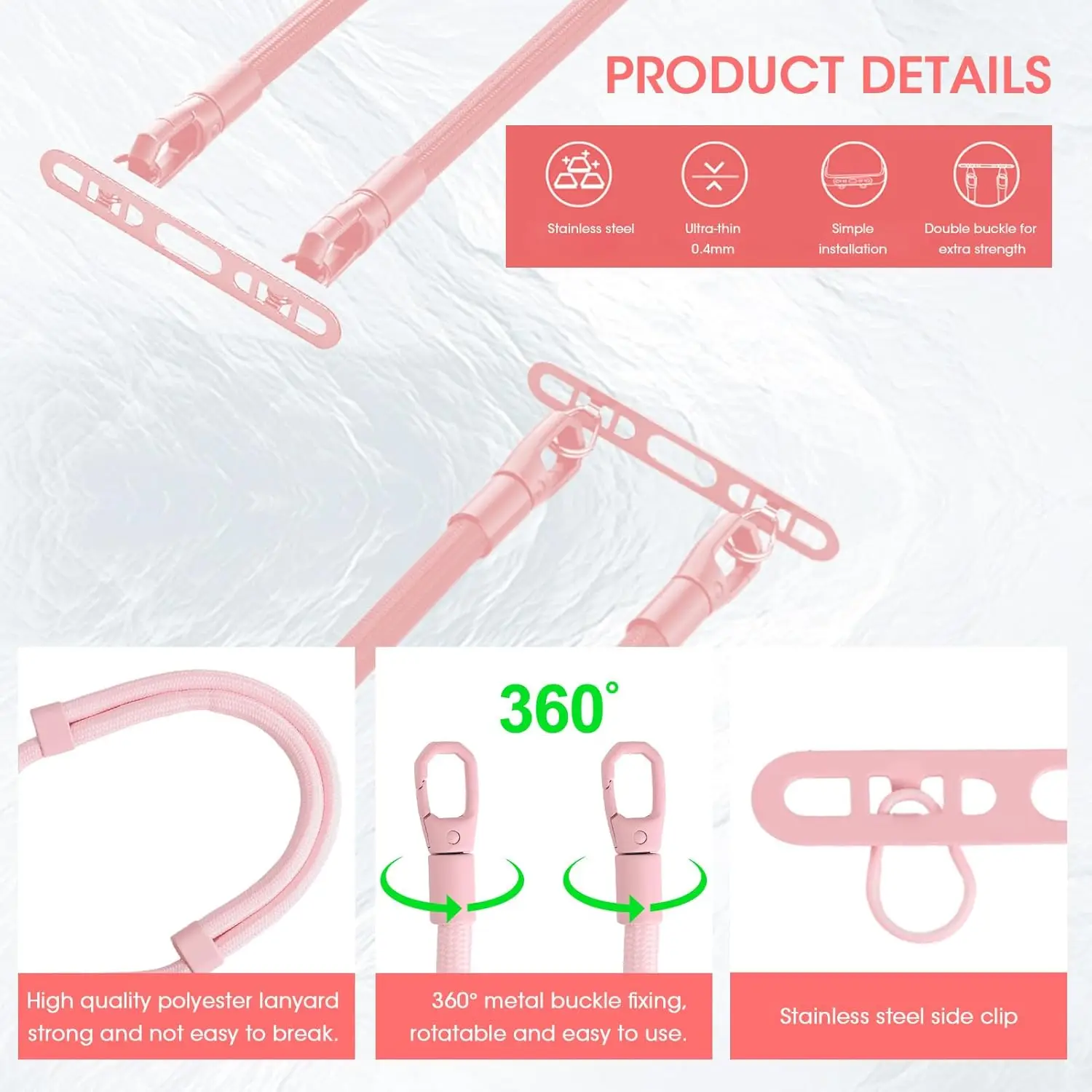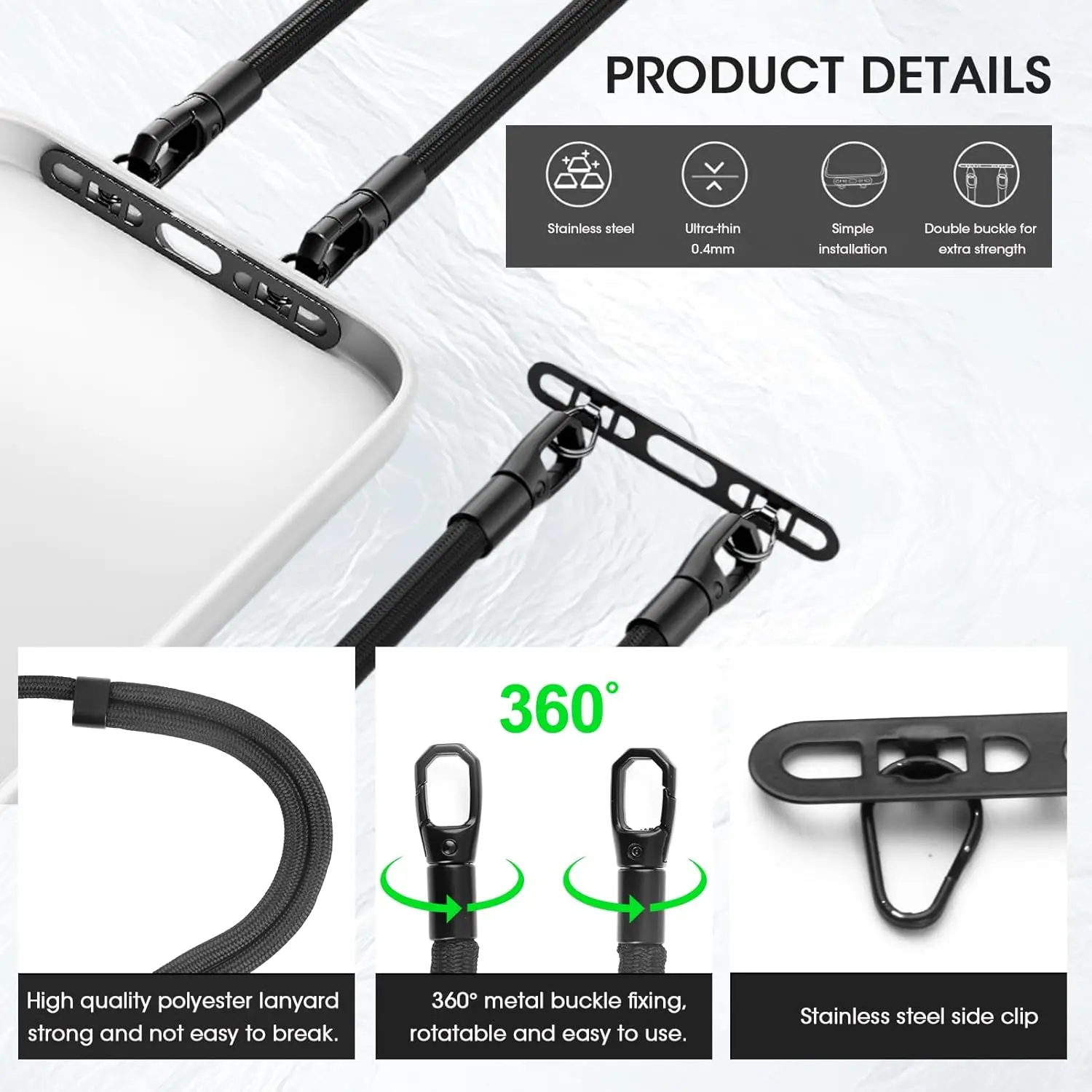 Cell Phone Lanyard, Upgraded Double Buckle Hole Ring Cell Phone Lanyard Patch and Adjustable Neck Strap No-Residue Adhesive-Free