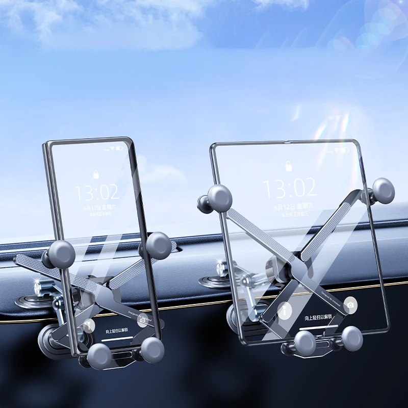 Eary Universal Car Phone Mount Dashboard Arch Bridge Alloy Base Angle Adjustable Car Tablet Holder Stand for 4.7-7.2 inch Phones