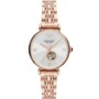 The Emporio Armani AR60023 Women’s Watch features a luxurious 34mm rose gold-tone stainless steel bracelet and a stunning silver open-heart dial with crystal-set index markers. Powered by automatic movement, this casual yet elegant timepiece is water-resistant up to 50 meters and offers timeless sophistication with its Roman numeral accents and scratch-resistant mineral crystal.