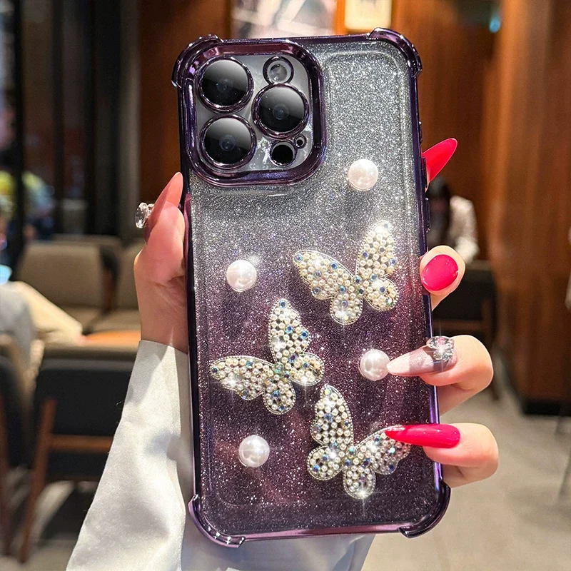 Luxury 3D Pearl Butterfly Glitter Shockproof Phone Case For Honor Magic 7 Lite X9C X9A X9B X6A X6B X8A X8B X8C X7A Back Cover