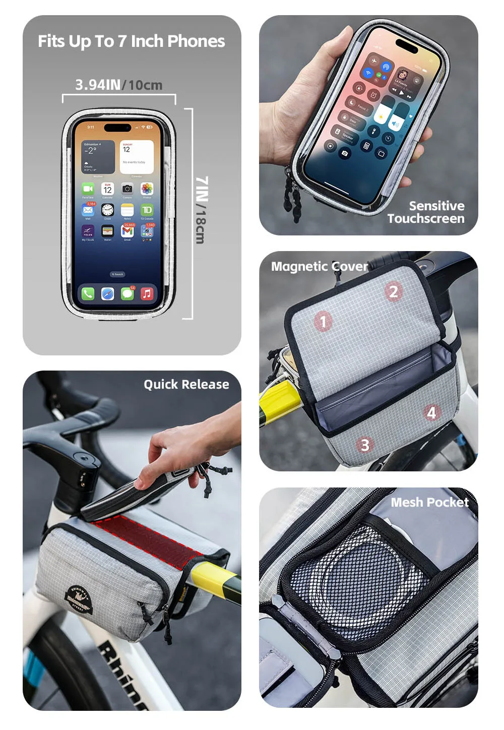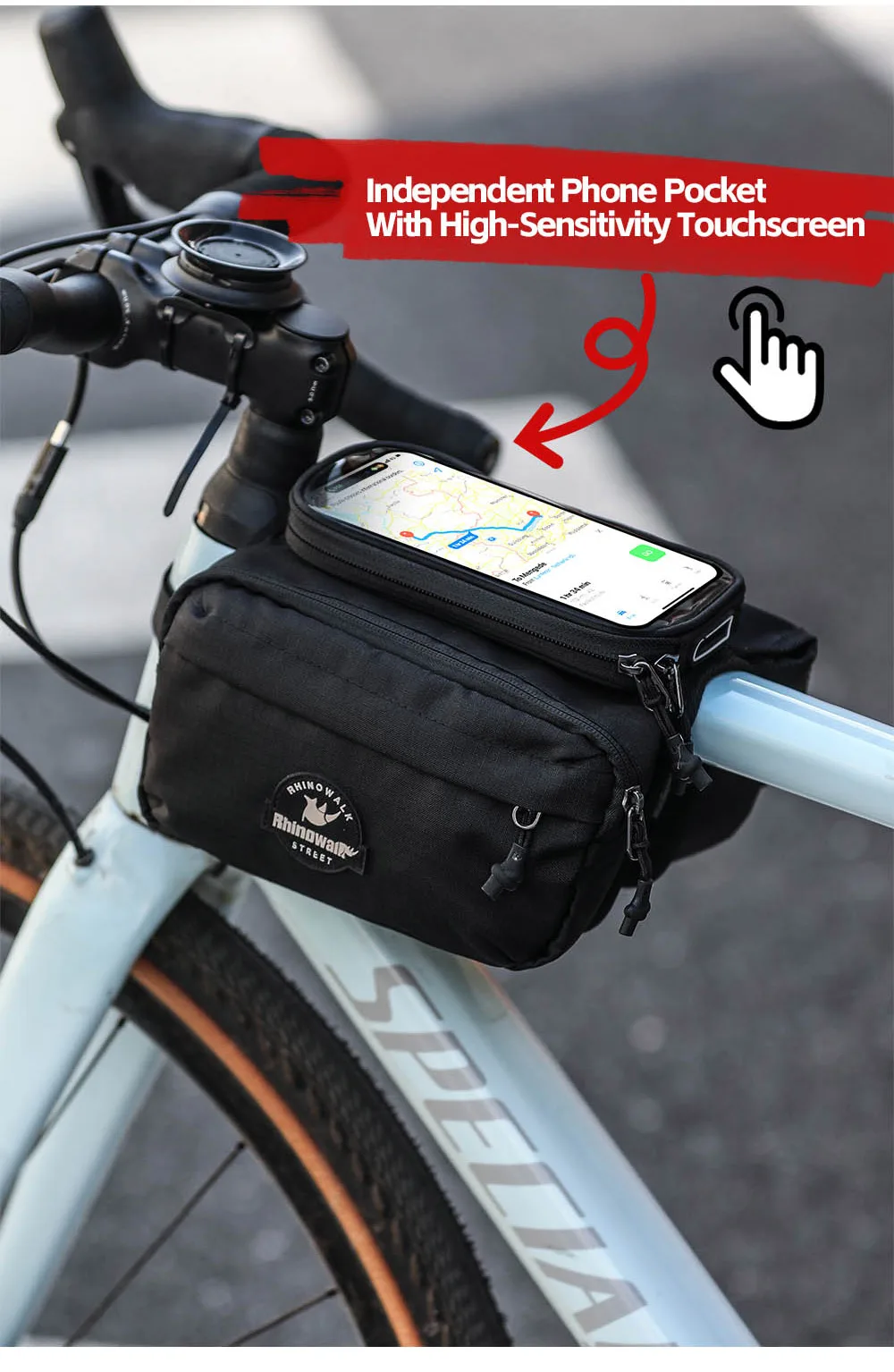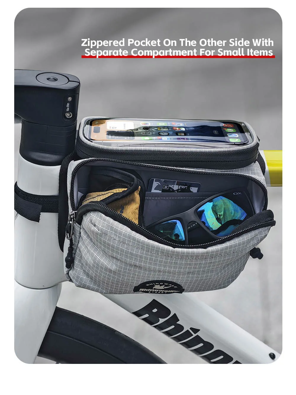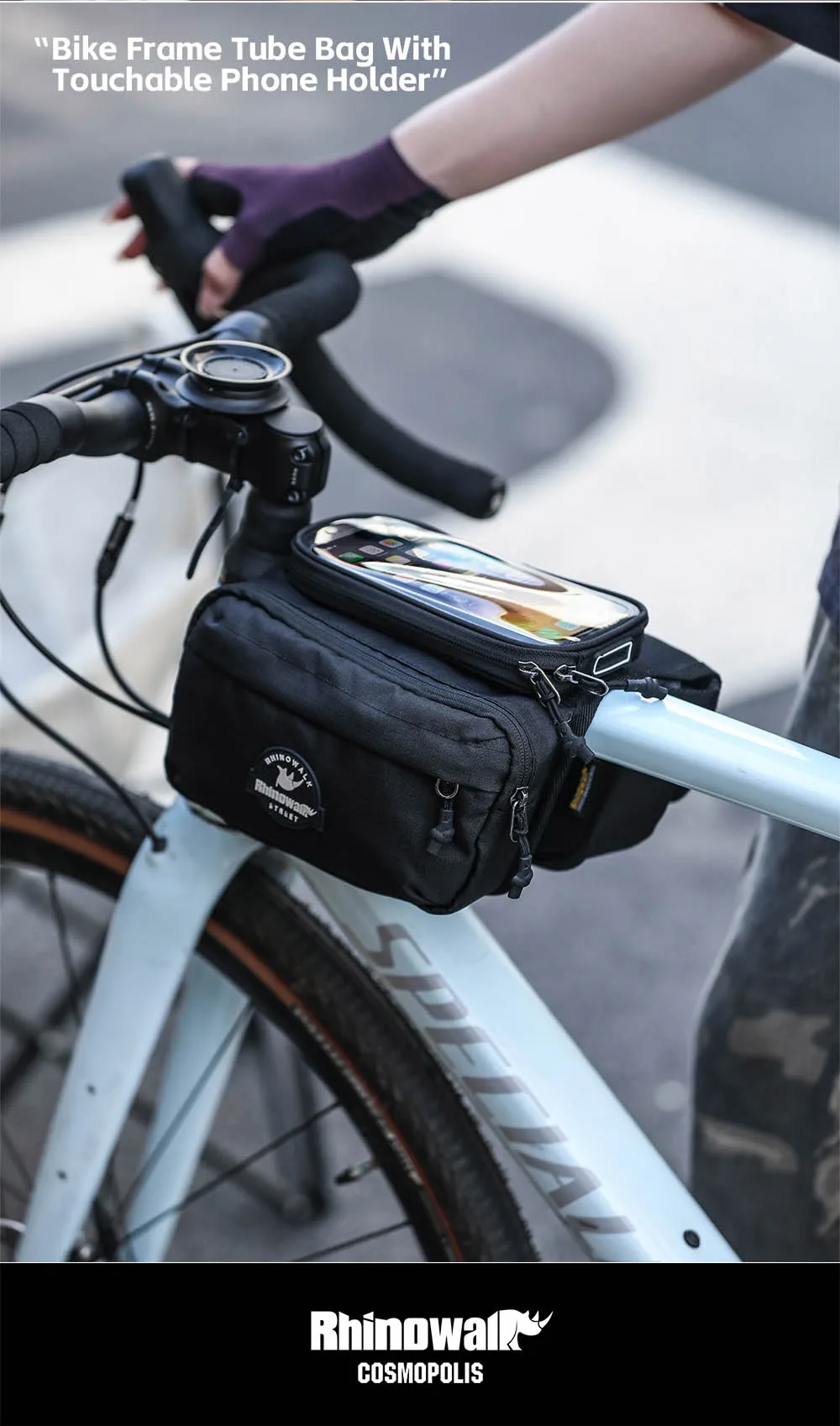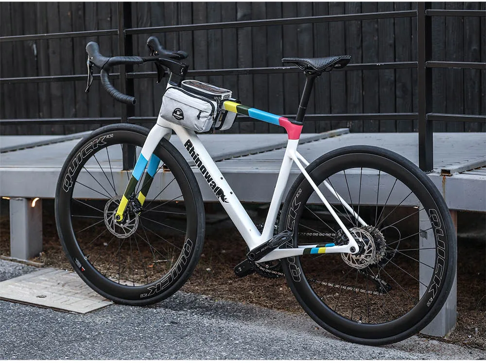 Rhinowalk Bike Frame Tube Bag With Touchable Phone Holder Pack Waterproof Bicycle Crossbar Saddlebag Single-Sided Magnetic Flap