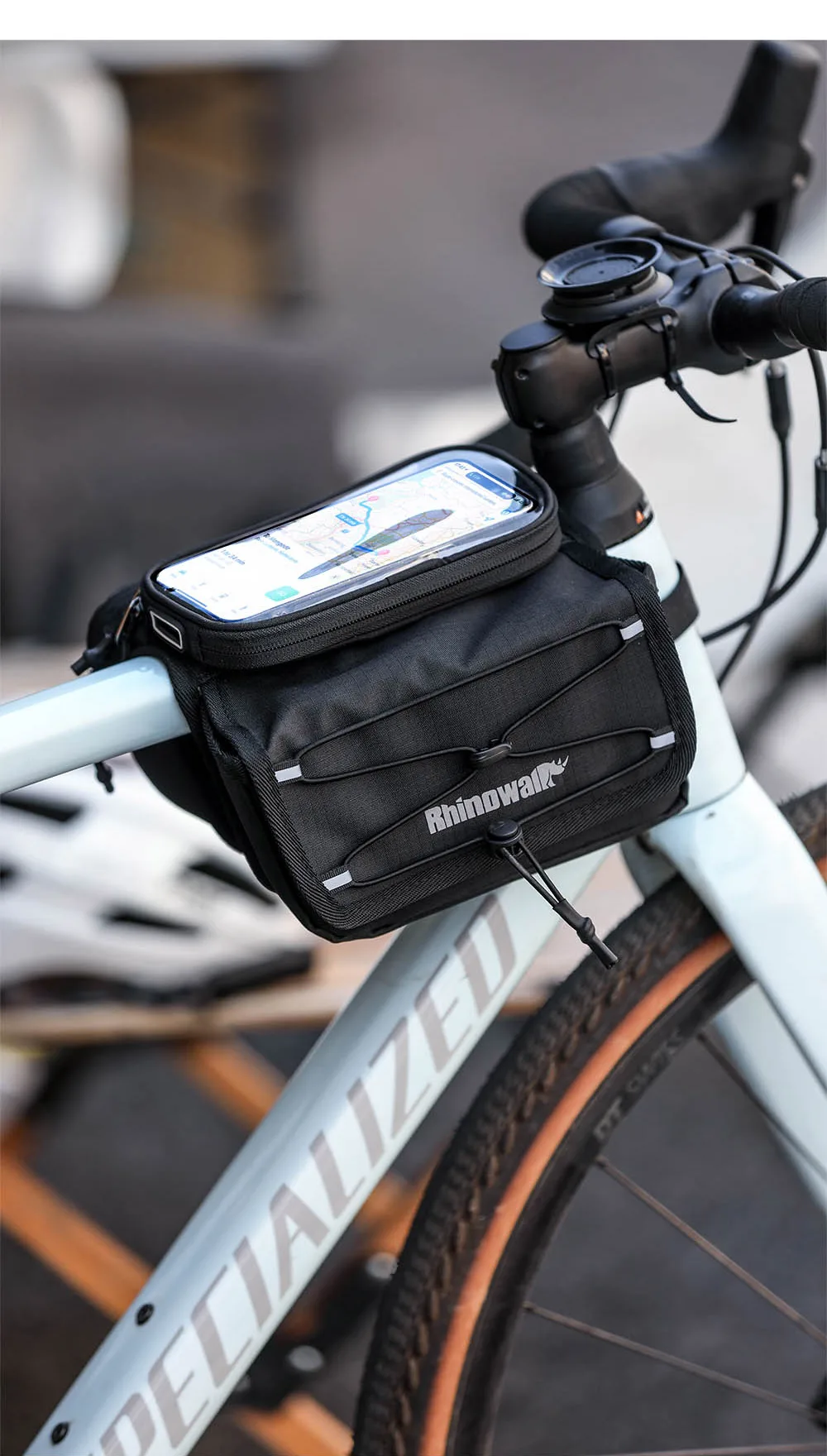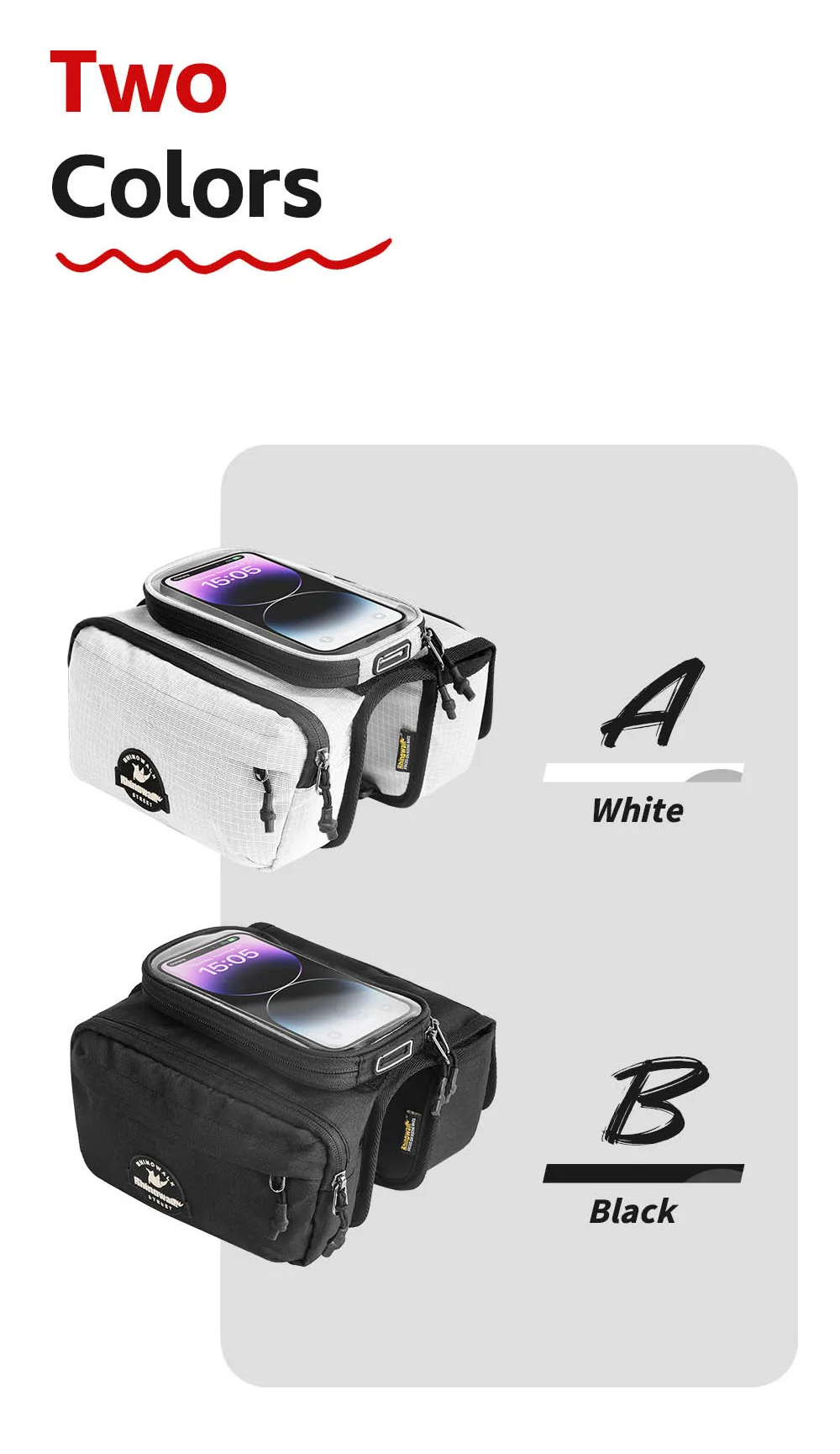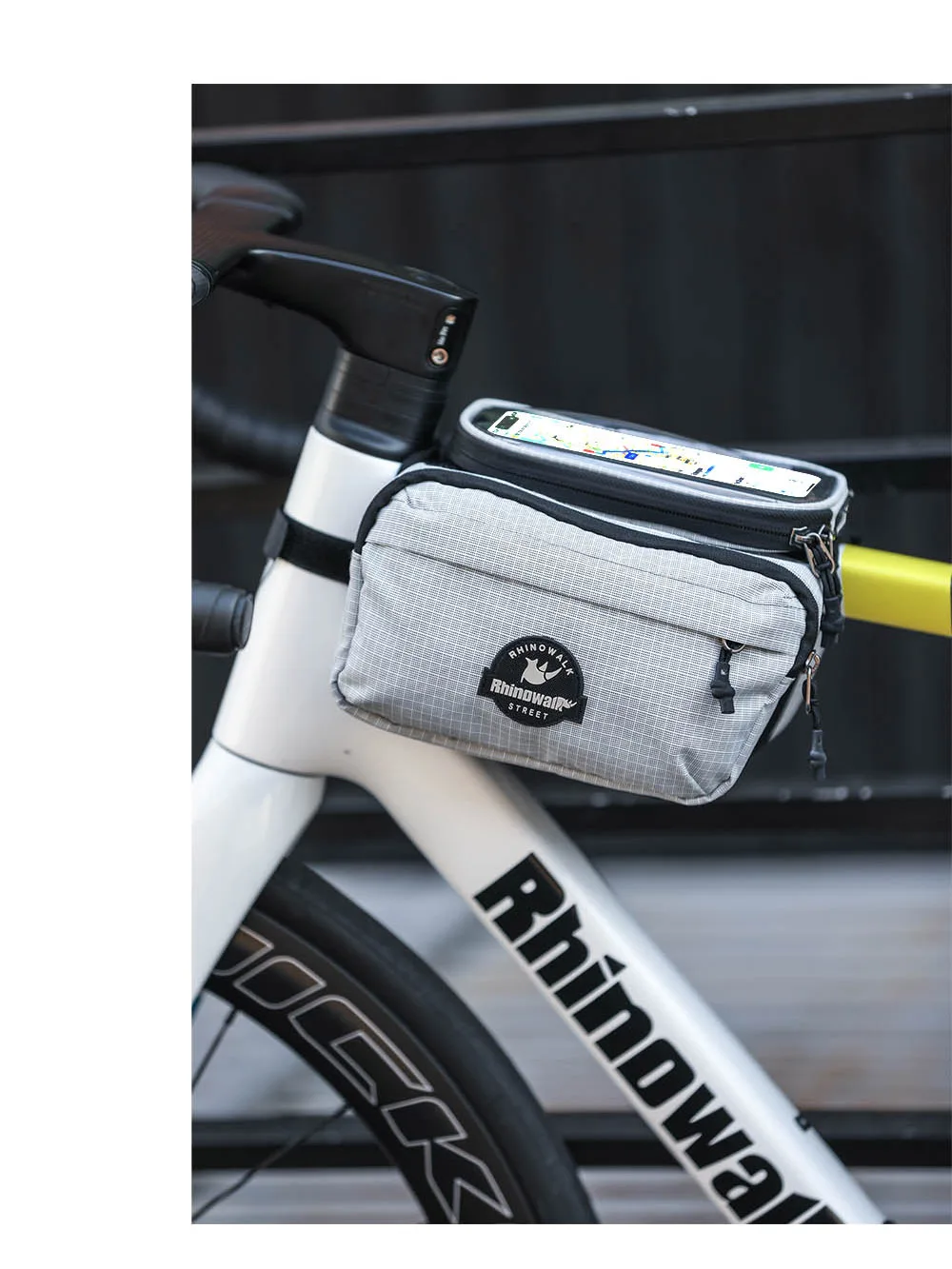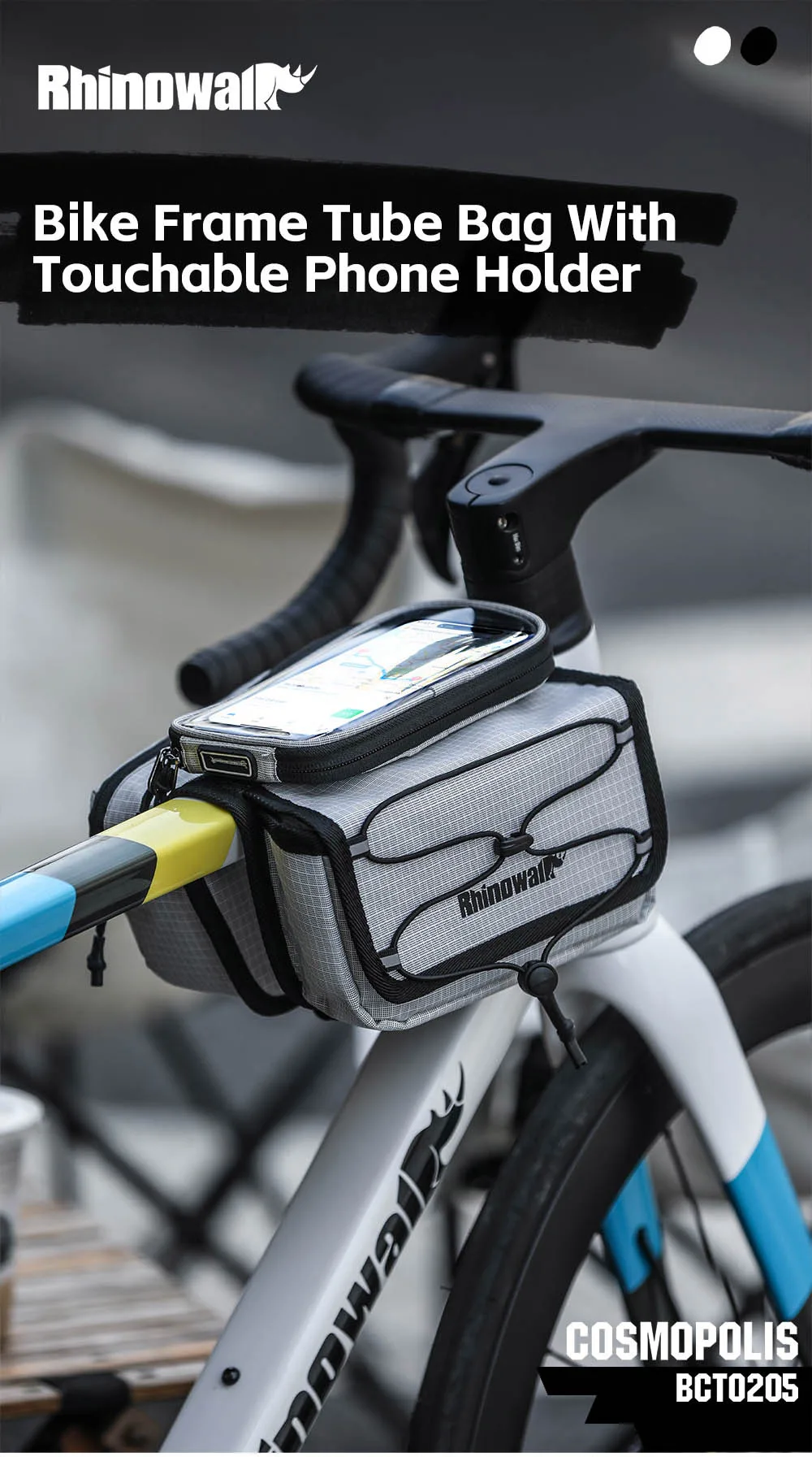 Rhinowalk Bike Frame Tube Bag With Touchable Phone Holder Pack Waterproof Bicycle Crossbar Saddlebag Single-Sided Magnetic Flap