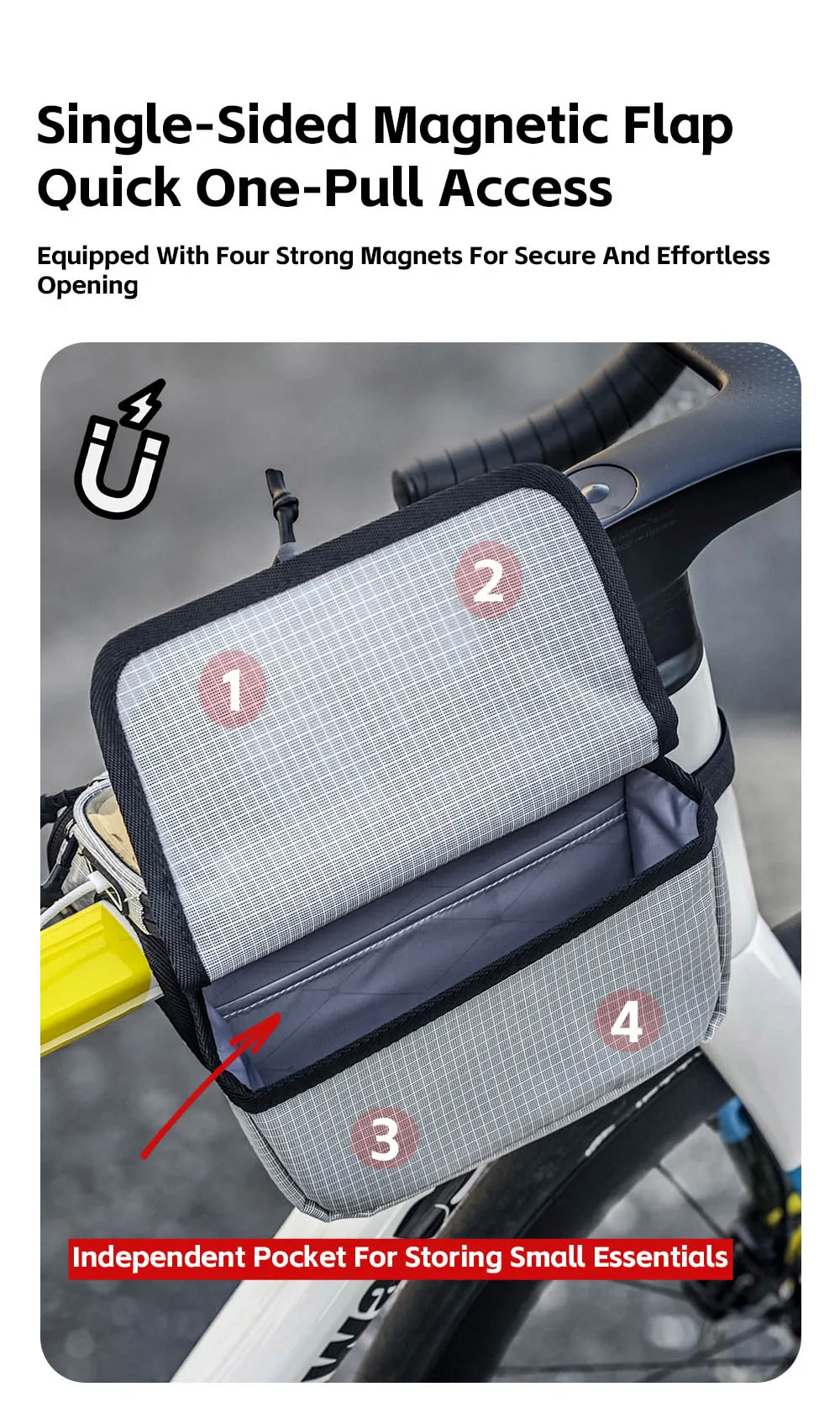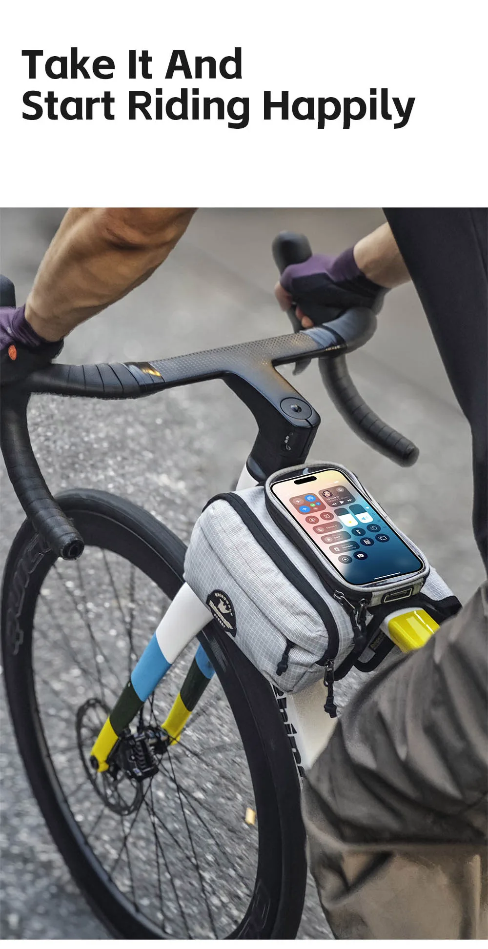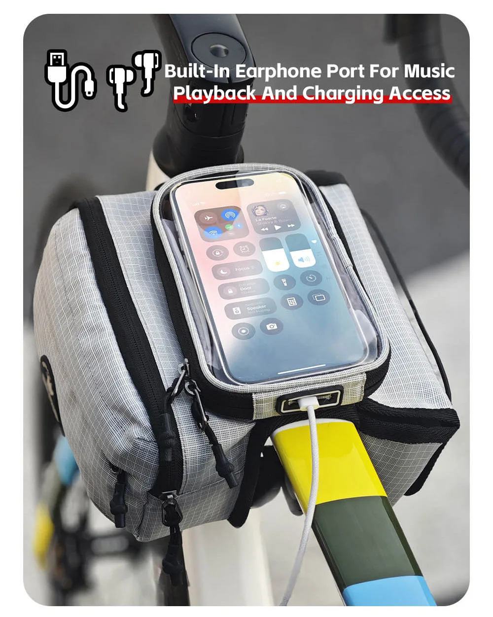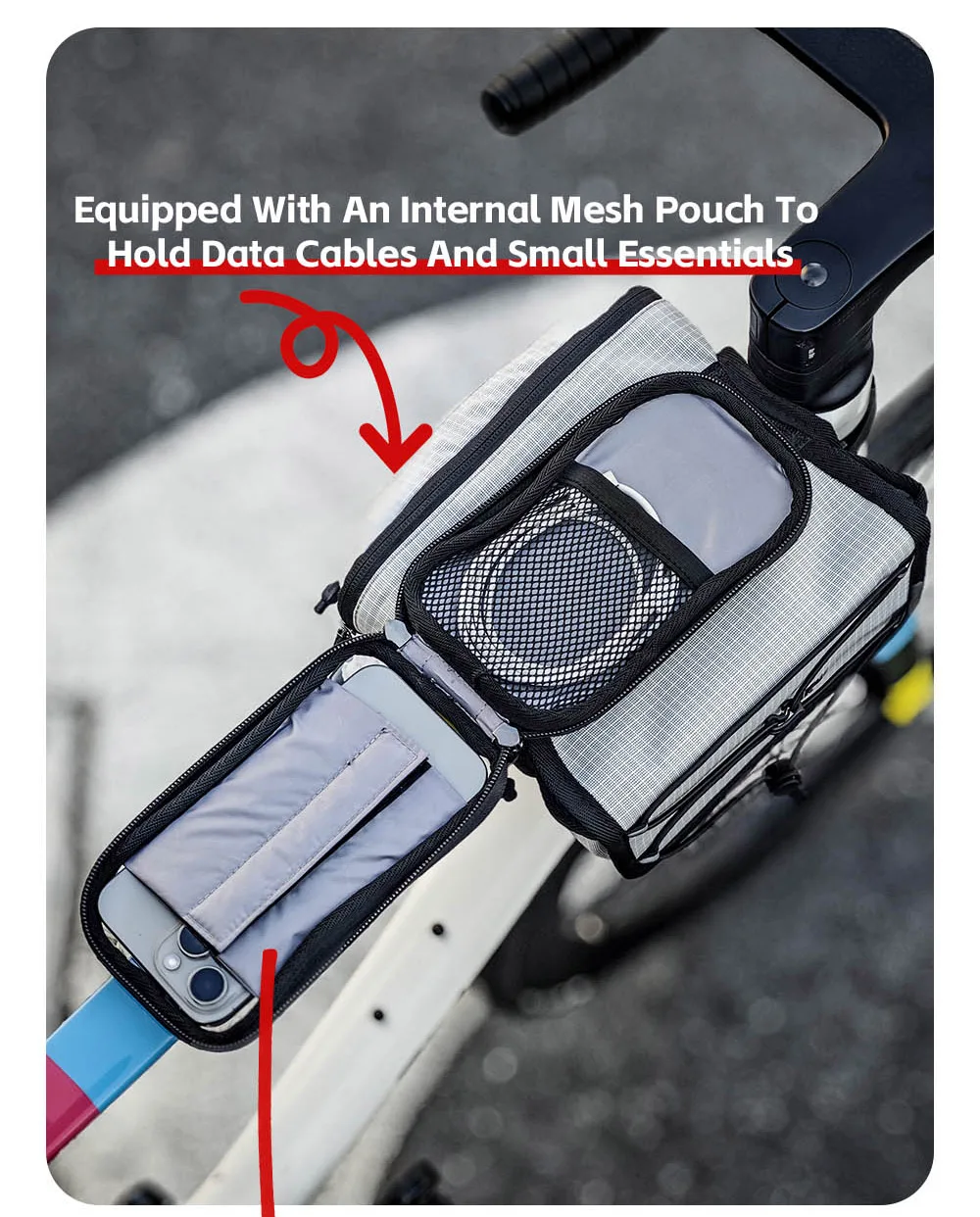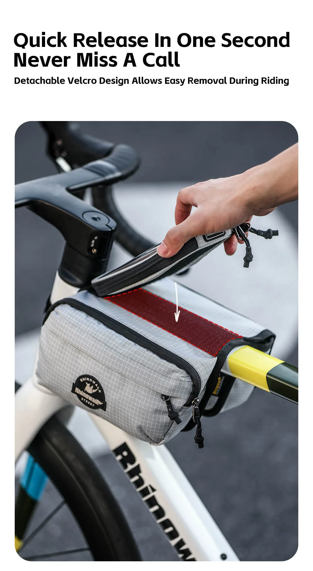 Rhinowalk Bike Frame Tube Bag With Touchable Phone Holder Pack Waterproof Bicycle Crossbar Saddlebag Single-Sided Magnetic Flap