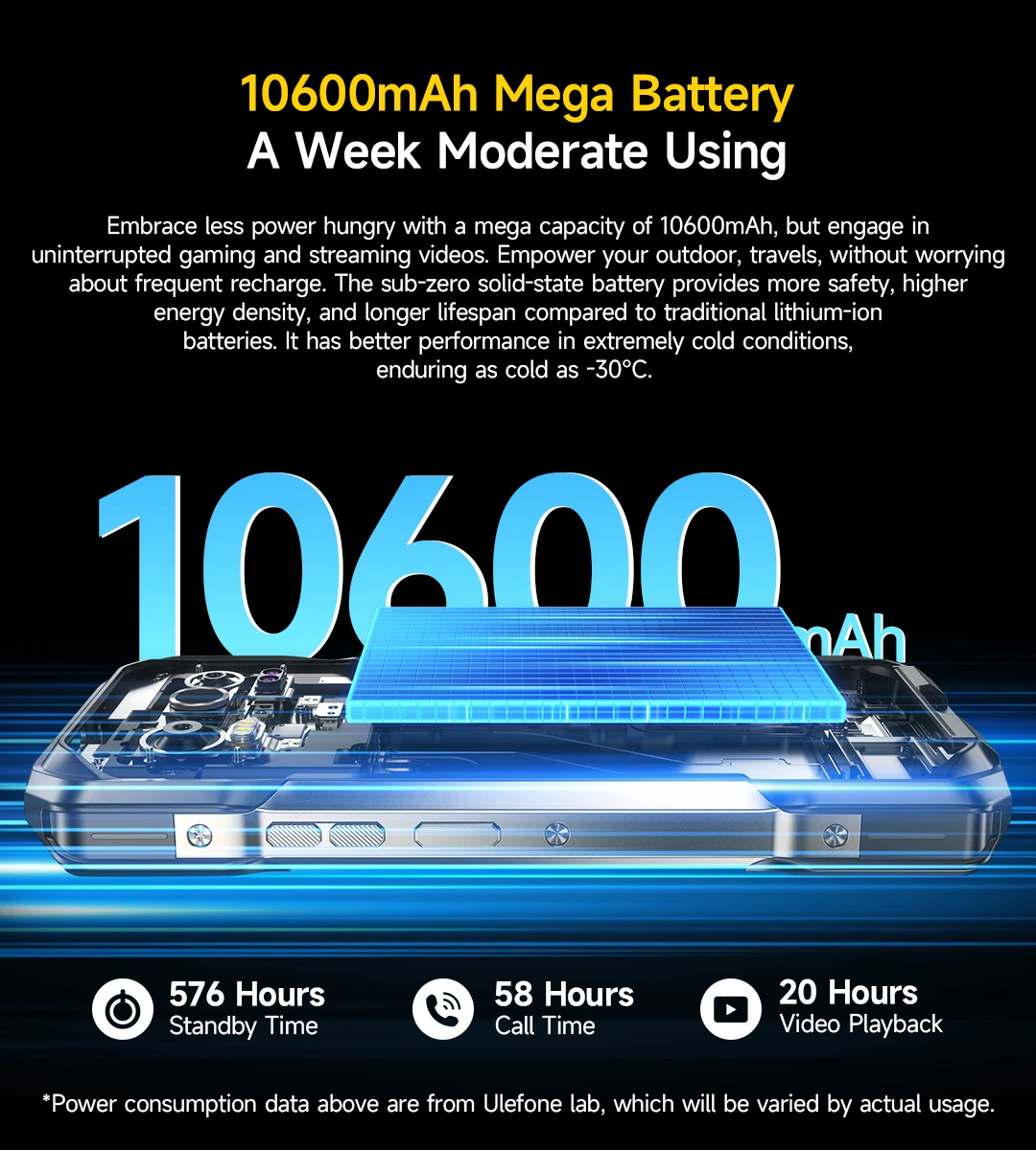 your outdoor, travels,without worrying about frequent recharge. The subzero sold-state battery provides more safety, higher energy density