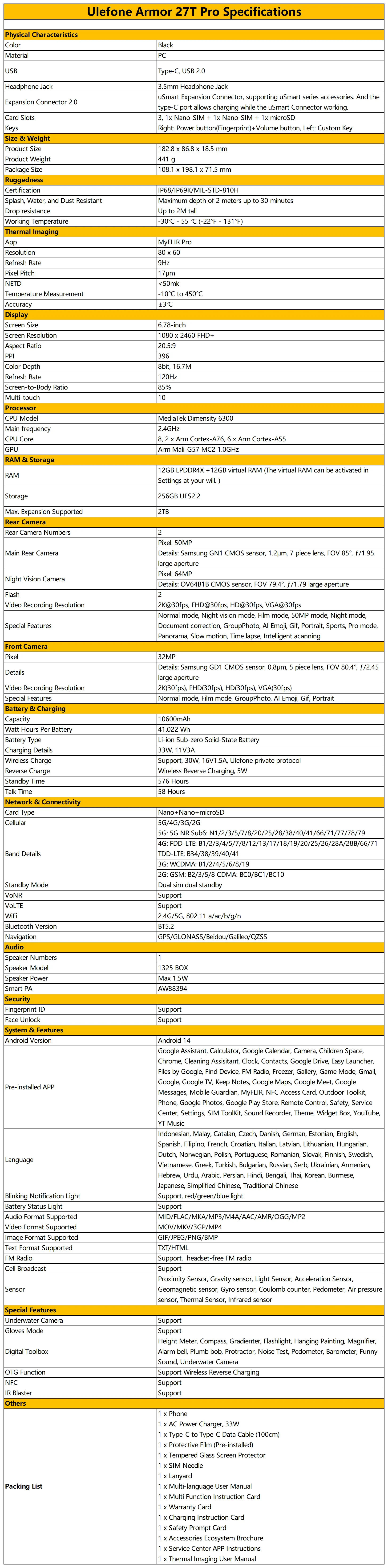 Ulefone Armor 27T Pro Specifications